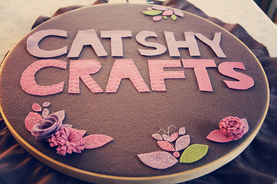 I have been hard at work creating a display for my booth including a Catshy Crafts sign using a large quilting hoop. Kinda like a giant version of my embroidery hoop art. Here’s a photo in progress. You can tell the scale by this photo but it’s big! I share a photo of the finished piece a little later.