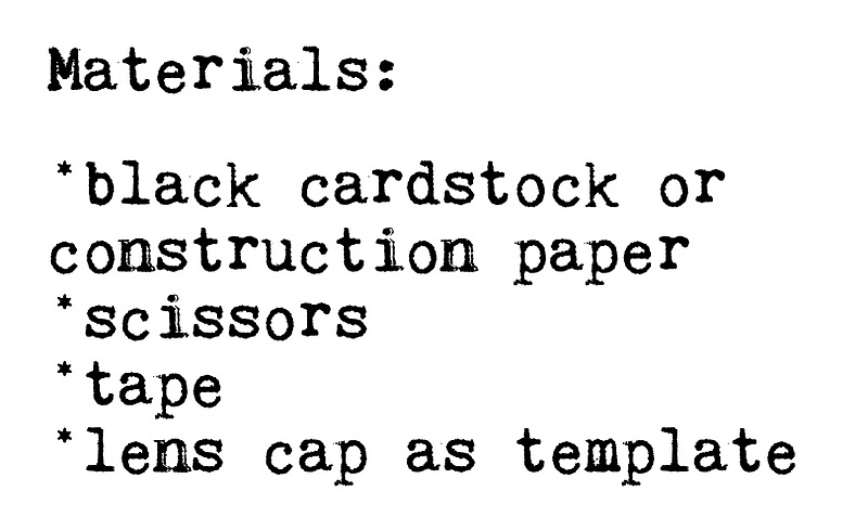 1. Before you make your lens hood, you will need to decide which lens you will be using. Choose your largest aperture lens. I used a Canon 50 mm F/1.4 lens for my Canon dSLR.