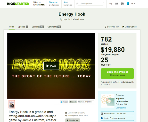 Of course, I usually don’t post about video games on this blog. But this one is a special one for my entire family. My husband recently launched a Kickstarter for his most recent videogame, Energy Hook. Something he’s been working on for the past year or so.