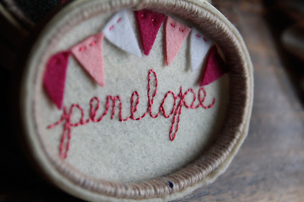 In addition to these felt flowers, I have re-listed my personalized embroidery hoop art in the shop and updated with a new color option. The customer who ordered this hoop tweaked the colors a bit and I love how it turned out!