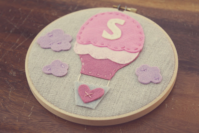 New! Monogram Pink Ombre Felt Hot Air Balloon Hoop Art