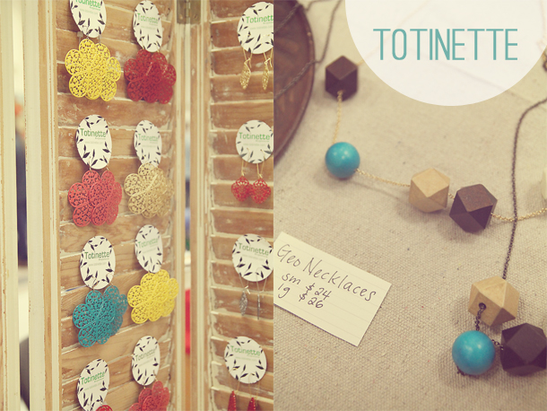 The jewelry at Totinette caught my eye – strikingly saturated metal filigree earrings shared space with geometric wooden necklaces in natural tones.